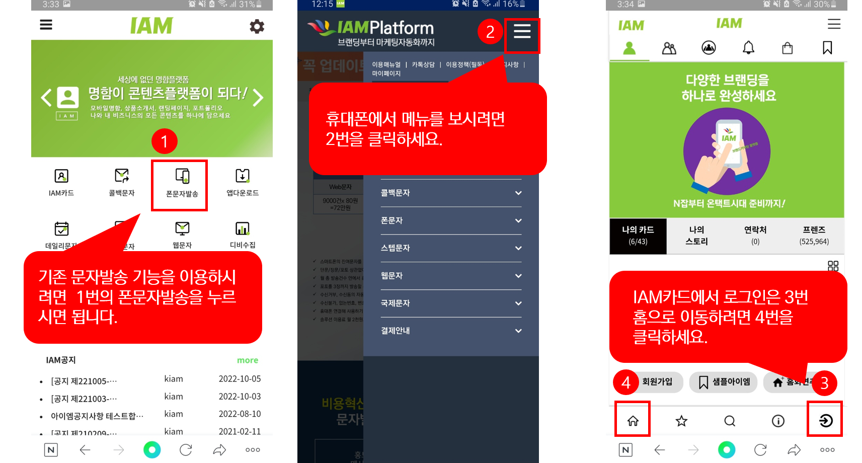 [대중화 오픈 도메인 전환 완료] 안녕하세요? 오랫동안 준비해온 IAM플랫폼의 대중화 오픈을 위해 도메인과 UI 및 디자인이 변경됩니다. 현재 기존도메인에서 접속하면 새 도메인으로 자동 연결을 해두었습니다. 이후 기존도메인을 폐기하면 새도메인 접속이 안 될수 있으니 kiam.kr 도메인을 즐겨찾기로 등록하거나 수정을 해두십시요. 1. 기존 도메인 접속시 자동으로 새도메인으로 이동합니다. > 새도메인 이동시 IAM앱의 홈으로 접속되므로 거기에서 가고 싶은 매뉴로 이동하세요. > 그동안 즐겨찾기 링크로 접속시에도 앱홈으로 이동될 경우 해당 페이지로 직접 이동해주세요. 2. 기존 앱 삭제 후 원스토어에서 "kiam" 앱을 설치하세요. ▶ kiam 앱 설치 바로가기(클릭)